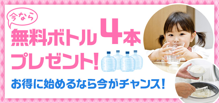 初めて富士美味しい水を申込みの方に無料ボトル4本プレゼント!