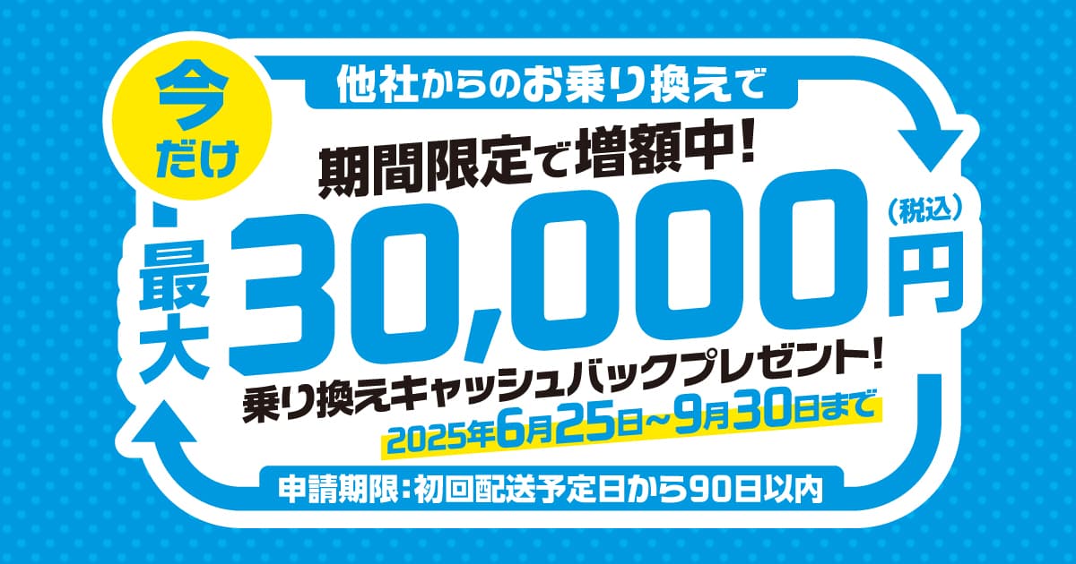 - 乗り換えキャッシュバックプレゼント以外の新規申込みに関する特典との併用は不可