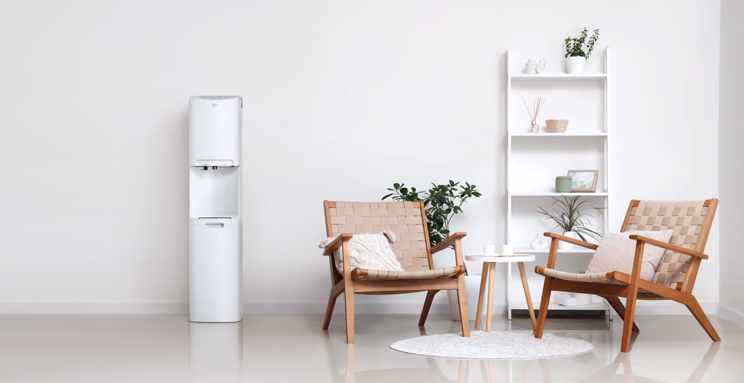 無駄のないすっきりとしたデザインでキッチンやリビングなどの限られたスペースにも自然に収まり、置き場所に悩むことがありません。タンクは簡単に補充できるため、誰でも手軽に美味しい水を楽しめます。また温水と冷水の両方に対応しているのでコーヒーやお茶、料理の下ごしらえなど、日常のさまざまなシーンで活躍します。